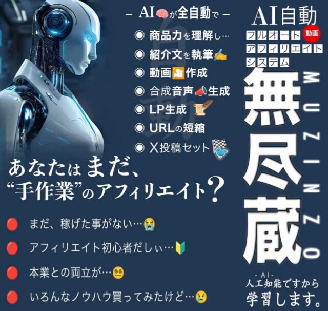 無尽蔵は、動画アフィリエイトをAIに任せられるツールです。