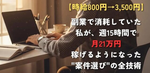 「副業で消耗していた私が、週15時間で月21万円稼げるようになった案件選びの全技術」では、時給換算で3000円以上の高単価案件を見極め、選び、継続受注する具体的な方法を知ることができます。