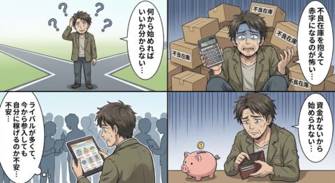 しかし、不用品の売却を一通り終わってから、市販の商品を仕入れて転売する段階になった途端、思い通りに稼げずに挫折する人が続出しています。
